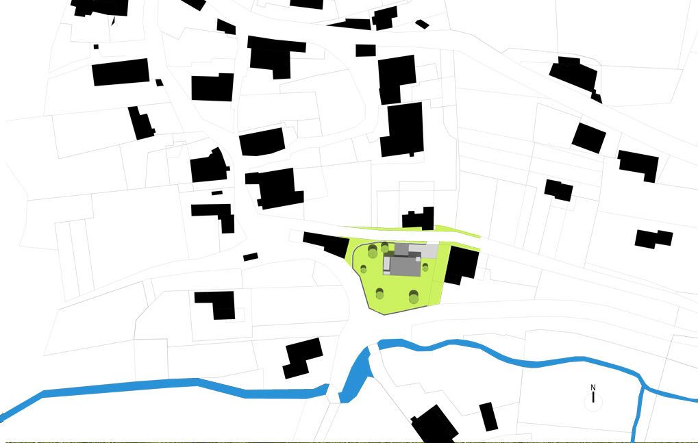 Le site est localisé à l’intérieur du village de Granges-le-Bourg, dans un vallon en contrebas du vieux centre. Le projet est basé sur les concepts de bioclimatisme, basse énergie et développement durable. Le terrain offre des caractéristiques intéressantes pour accueillir un tel projet. Son fort dénivelé orienté sud offre un ensoleillement important sans masque solaire. Le terrain est desservi par deux voiries, une en partie haute et une en partie basse, la construction est implantée en haut du terrain afin de bénéficier d’une vue panoramique sur le paysage direct composé d’espaces cultivés et d’espaces boisés.