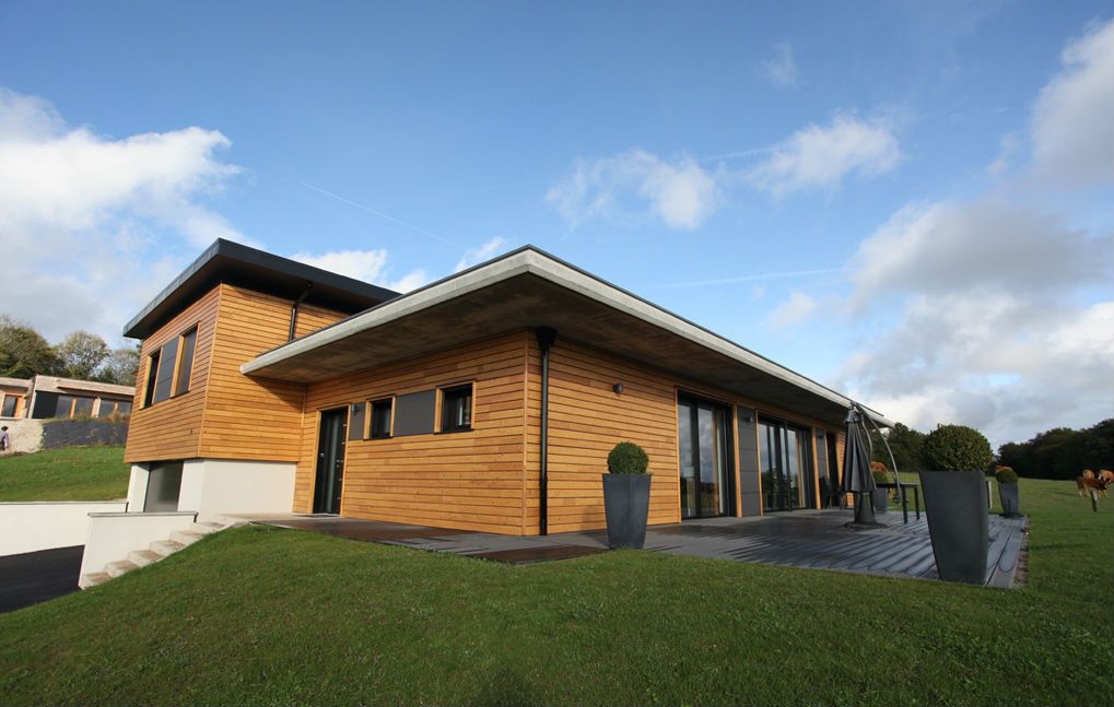 Le projet est basé sur les concepts de bioclimatisme, basse énergie et développement durable. Après étude du site, il s’avère que ce dernier offre des caractéristiques intéressantes pour accueillir un tel projet. Son fort dénivelé est orienté sud-ouest offrant un ensoleillement important avec masques solaires végétaux. La construction est implantée en haut du terrain, au nord de la parcelle, afin de bénéficier d’un ensoleillement favorable en maîtrisant les masques solaires ainsi que d’une vue panoramique sur le paysage direct composé d’espaces boisés.